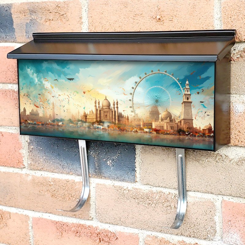 Applying your Indian City Holiday Scene townhouse / ranch mailbox cover it’s pretty easy to convert your mailbox to a special and unique item. These covers require a flat surface, so they work with townhouse / ranch mailboxes that do not have any embossed decoration or signs. Magnetic mailbox covers work with steel boxes, for aluminum and plastic boxes we offer the self-adhesive vinyl covers. In case your mailbox doesn’t work with these covers, you can purchase the preinstalled cover on a brand new mailbox as well. Also, you can create your custom townhouse / ranch mailbox cover using you own pictures, adding your name, street number, etc.