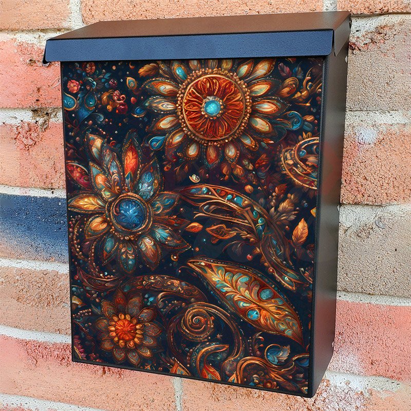 This Indian Folk Flowers and Leaves mailbox design was created by Krisztina Soos
