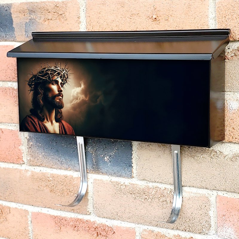 Applying your Jesus Christ Wearing A Crown Of Thorns 2 townhouse / ranch mailbox cover it’s pretty easy to convert your mailbox to a special and unique item. These covers require a flat surface, so they work with townhouse / ranch mailboxes that do not have any embossed decoration or signs. Magnetic mailbox covers work with steel boxes, for aluminum and plastic boxes we offer the self-adhesive vinyl covers. In case your mailbox doesn’t work with these covers, you can purchase the preinstalled cover on a brand new mailbox as well. Also, you can create your custom townhouse / ranch mailbox cover using you own pictures, adding your name, street number, etc.