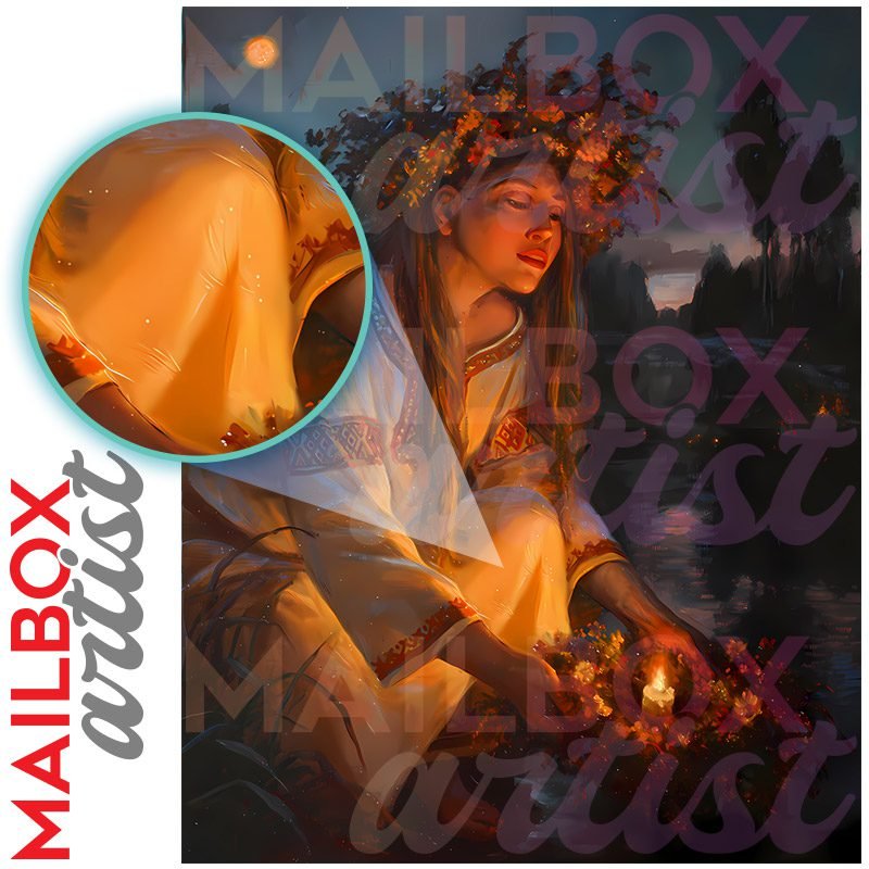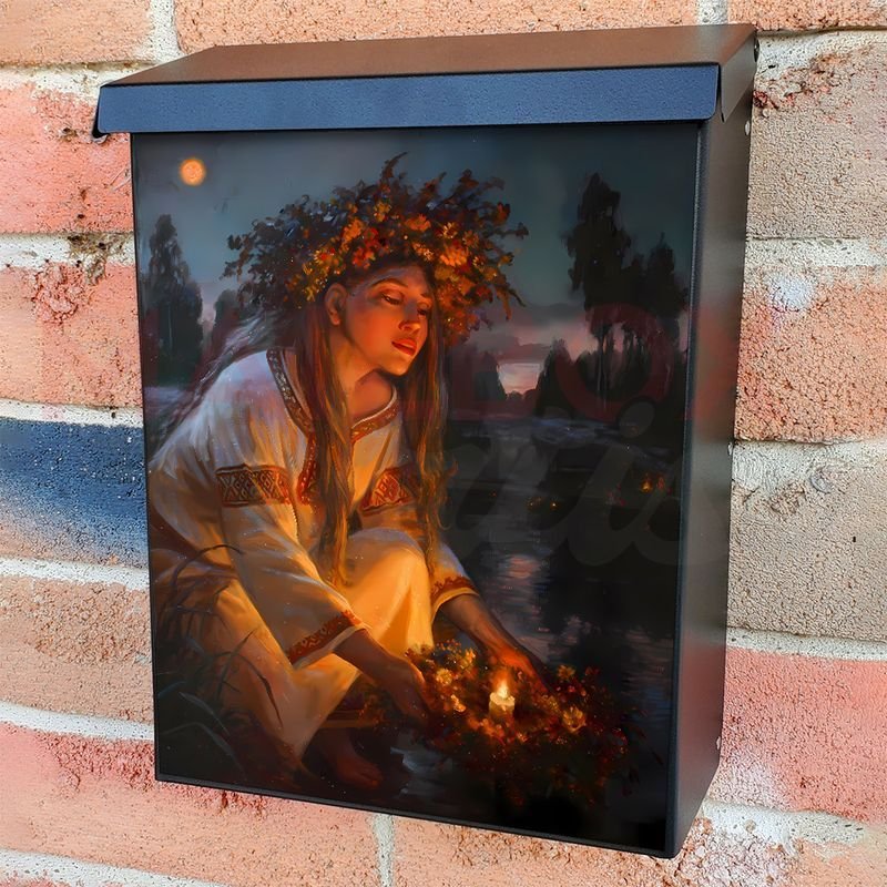 With this Kupala Night by Andrey Shishkin colonial mailbox cover it’s pretty easy to convert your mailbox to a special and unique item. These covers require a flat surface, so they work with colonial mailboxes that do not have any embossed decoration or signs. In case your mailbox doesn’t work with these covers, you can purchase the preinstalled cover on a brand new mailbox as well. Also, you can create your custom colonial mailbox cover using you own pictures, adding your name, street number, etc.