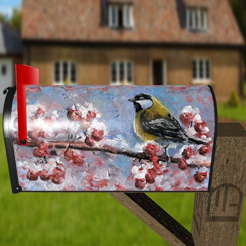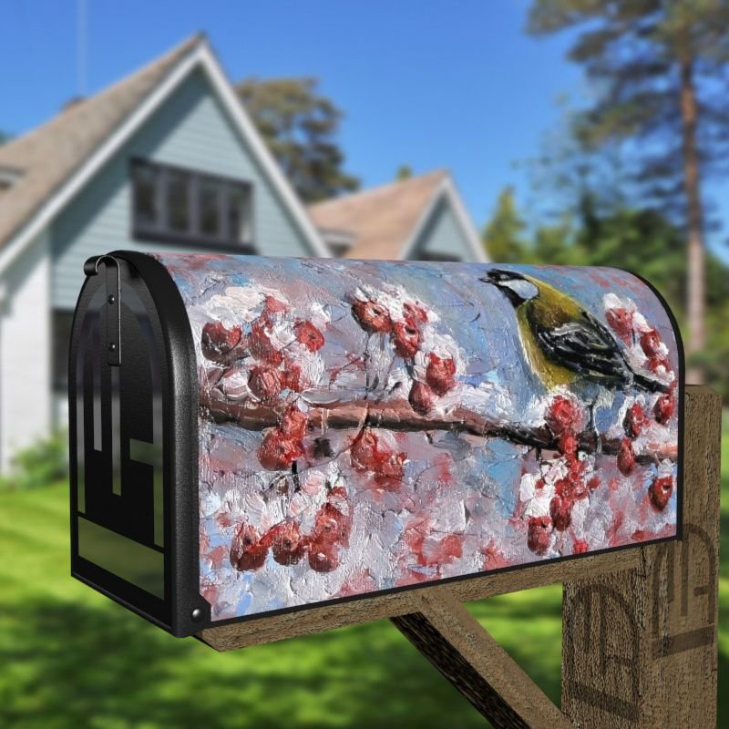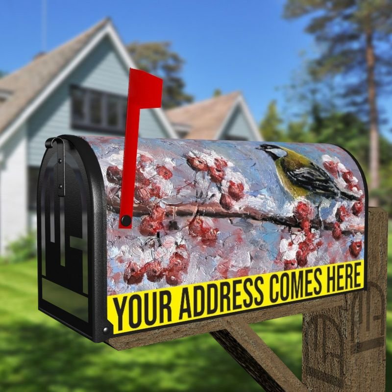 Grab this creative Little Bird on a Red Berry Tree rural/curbside/farm mailbox cover as self adhesive vinyl or magnetic cover. Our magnetic covers have the magnetic surface under the whole design, not only two magnet strips like in cheaper products. We also offer both the self adhesive and the magnetic covers with regular opaque white vinyl or reflective vinyl which works the same way as the licence plates or road signs; pretty visible at night. We make these covers for both large and small mailboxes.