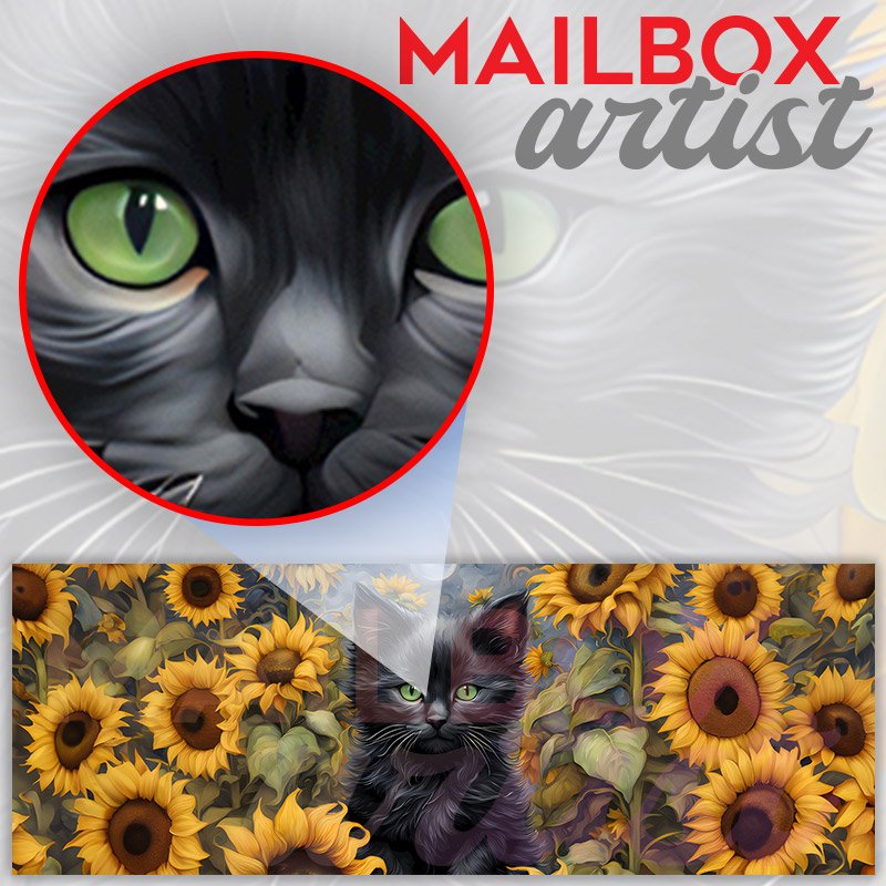 This Little Black Cat in the Sunflower Field mailbox design was created by Krisztina Soos