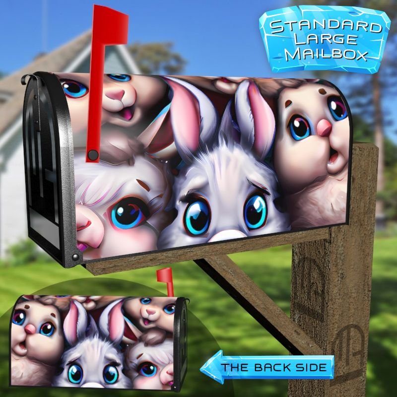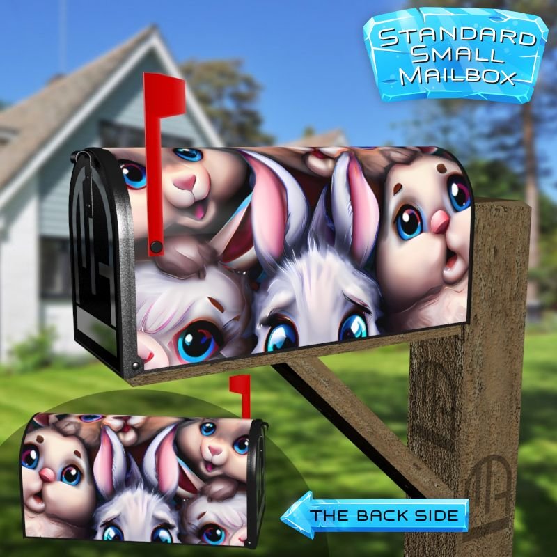 Dressing up your rural farm mailbox with the Little Bunny Babies mailbox cover is an easy way to convert it into a unique and special item. These covers require a smooth surface, so they are compatible with rural farm mailboxes that do not have any embossed decorations or signs. Magnetic mailbox covers work with steel boxes only, while self-adhesive vinyl covers are available for aluminum, plastic and steel boxes. If your mailbox is not compatible with these covers, you can purchase a brand new mailbox with a preinstalled cover. Additionally, you have the option to create a custom rural farm mailbox cover with your own pictures, name, street number, etc.