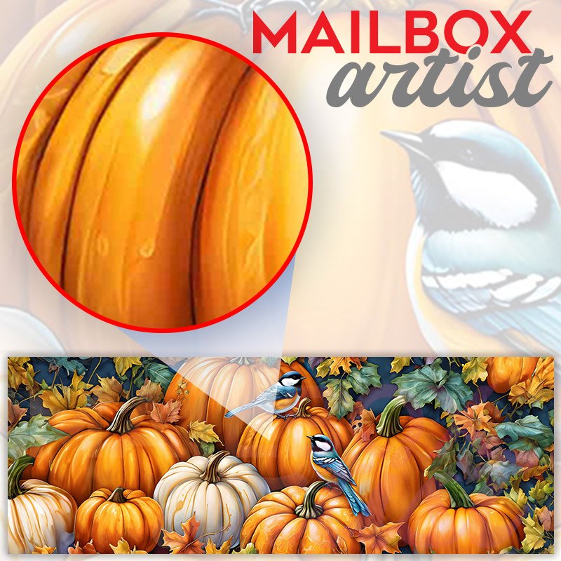 This Little Chickadees and Pumpkins mailbox design was created by Krisztina Soos