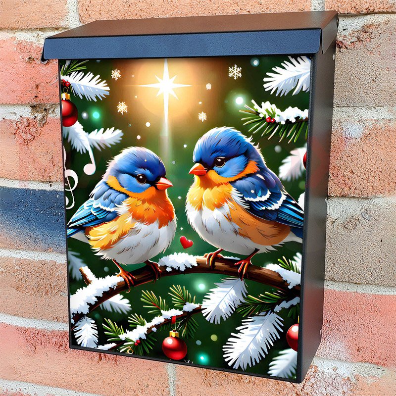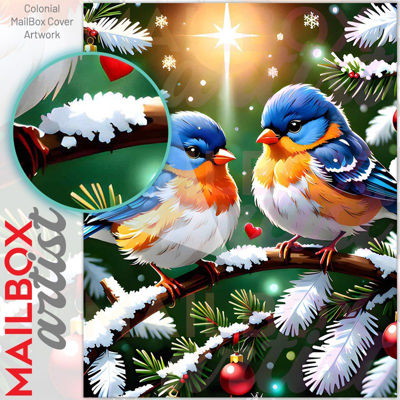 With this Little Christmas Birds colonial mailbox cover it’s pretty easy to convert your mailbox to a special and unique item. These covers require a flat surface, so they work with colonial mailboxes that do not have any embossed decoration or signs. Magnetic mailbox covers work with steel colonial boxes only, while self-adhesive vinyl covers are available for aluminum, plastic and steel boxes. We also offer both self-adhesive and magnetic covers with regular opaque white vinyl or reflective vinyl, which works similarly to license plates or road signs. The reflective option makes the entire cover’s surface reflective, ensuring visibility at night. In case your mailbox doesn’t work with these covers, you can purchase the preinstalled cover on a brand new mailbox as well. Also, you can create your custom colonial mailbox cover using you own pictures, adding your name, street number, etc.