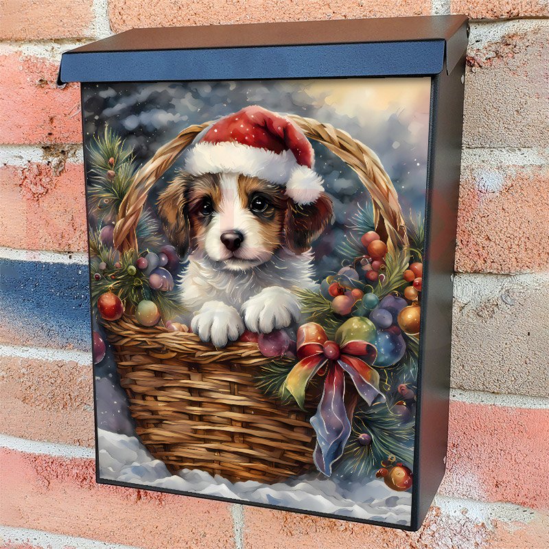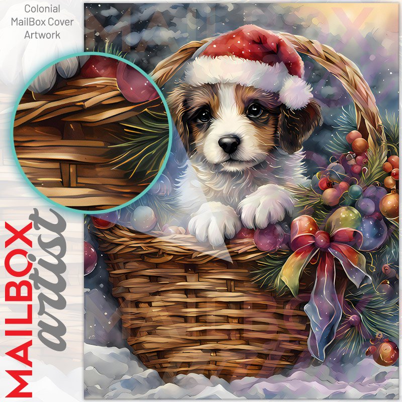 Little Christmas Dog in the Basket Colonial Mailbox Cover