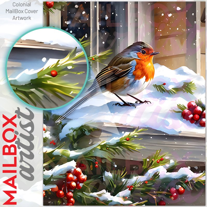 With this Little Christmas Robin at the Window colonial mailbox cover it’s pretty easy to convert your mailbox to a special and unique item. These covers require a flat surface, so they work with colonial mailboxes that do not have any embossed decoration or signs. Magnetic mailbox covers work with steel colonial boxes only, while self-adhesive vinyl covers are available for aluminum, plastic and steel boxes. We also offer both self-adhesive and magnetic covers with regular opaque white vinyl or reflective vinyl, which works similarly to license plates or road signs. The reflective option makes the entire cover’s surface reflective, ensuring visibility at night. In case your mailbox doesn’t work with these covers, you can purchase the preinstalled cover on a brand new mailbox as well. Also, you can create your custom colonial mailbox cover using you own pictures, adding your name, street number, etc.