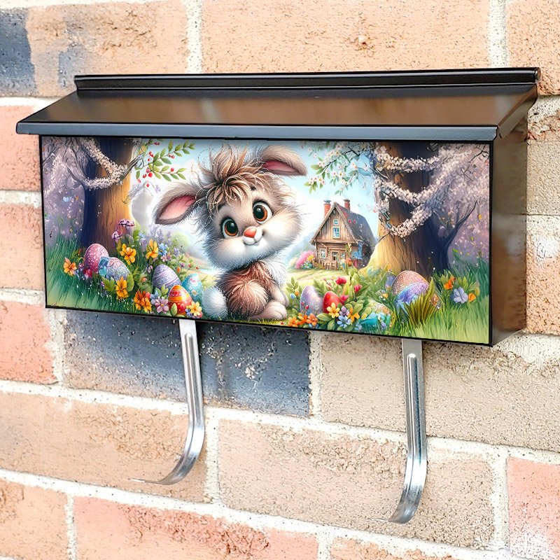Applying your Little Easter Bunny townhouse / ranch mailbox cover it’s pretty easy to convert your mailbox to a special and unique item. These covers require a flat surface, so they work with townhouse / ranch mailboxes that do not have any embossed decoration or signs. Magnetic mailbox covers work with steel boxes, for aluminum and plastic boxes we offer the self-adhesive vinyl covers. In case your mailbox doesn’t work with these covers, you can purchase the preinstalled cover on a brand new mailbox as well. Also, you can create your custom townhouse / ranch mailbox cover using you own pictures, adding your name, street number, etc.