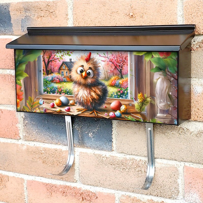 Applying your Little Easter Chicken townhouse / ranch mailbox cover it’s pretty easy to convert your mailbox to a special and unique item. These covers require a flat surface, so they work with townhouse / ranch mailboxes that do not have any embossed decoration or signs. Magnetic mailbox covers work with steel boxes, for aluminum and plastic boxes we offer the self-adhesive vinyl covers. In case your mailbox doesn’t work with these covers, you can purchase the preinstalled cover on a brand new mailbox as well. Also, you can create your custom townhouse / ranch mailbox cover using you own pictures, adding your name, street number, etc.