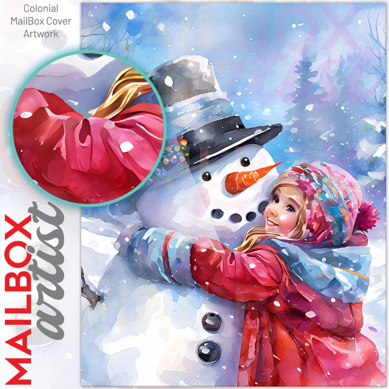 With this Little Girl and Snowman colonial mailbox cover it’s pretty easy to convert your mailbox to a special and unique item. These covers require a flat surface, so they work with colonial mailboxes that do not have any embossed decoration or signs. Magnetic mailbox covers work with steel colonial boxes only, while self-adhesive vinyl covers are available for aluminum, plastic and steel boxes. We also offer both self-adhesive and magnetic covers with regular opaque white vinyl or reflective vinyl, which works similarly to license plates or road signs. The reflective option makes the entire cover’s surface reflective, ensuring visibility at night. In case your mailbox doesn’t work with these covers, you can purchase the preinstalled cover on a brand new mailbox as well. Also, you can create your custom colonial mailbox cover using you own pictures, adding your name, street number, etc.