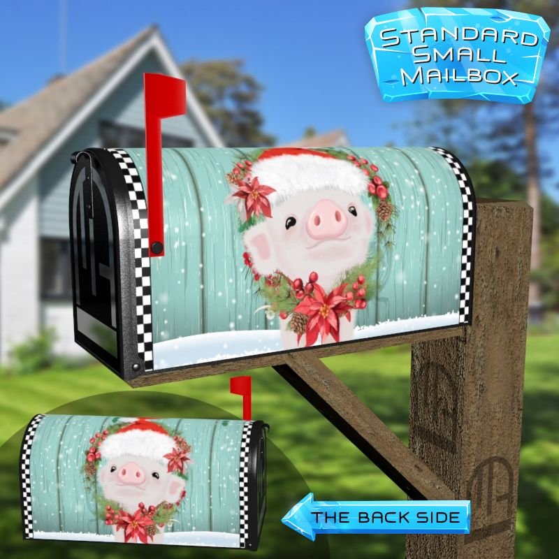 Dressing up your rural farm mailbox with the Little Piglet’s Christmas mailbox cover is an easy way to convert it into a unique and special item. These covers require a smooth surface, so they are compatible with rural farm mailboxes that do not have any embossed decorations or signs. Magnetic mailbox covers work with steel boxes only, while self-adhesive vinyl covers are available for aluminum, plastic and steel boxes. If your mailbox is not compatible with these covers, you can purchase a brand new mailbox with a preinstalled cover. Additionally, you have the option to create a custom rural farm mailbox cover with your own pictures, name, street number, etc.