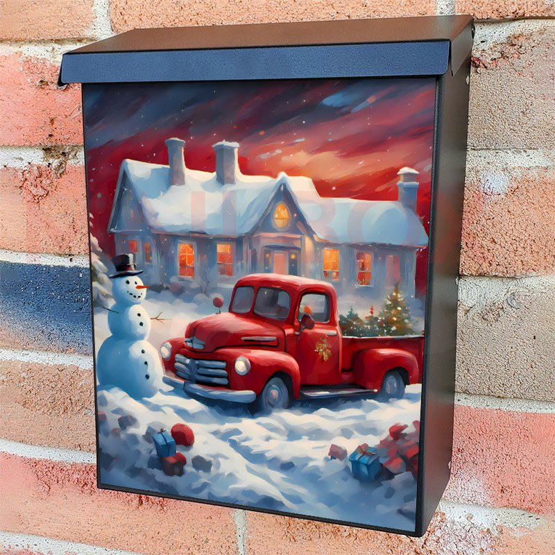 This Little Red Truck and Snowman mailbox design was created by Krisztina Soos