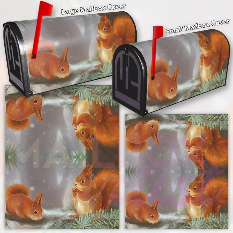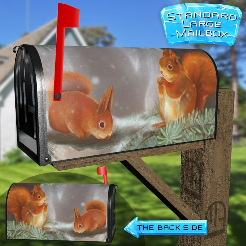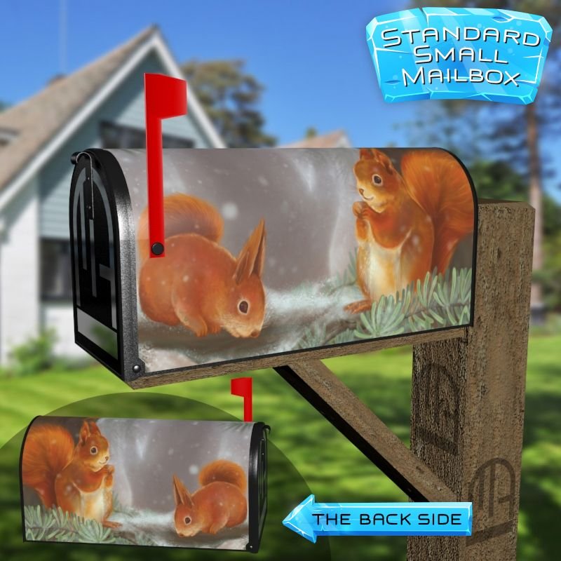 Dressing up your rural farm mailbox with the Little Red Winter Squirrels mailbox cover is an easy way to convert it into a unique and special item. These covers require a smooth surface, so they are compatible with rural farm mailboxes that do not have any embossed decorations or signs. Magnetic mailbox covers work with steel boxes only, while self-adhesive vinyl covers are available for aluminum, plastic and steel boxes. If your mailbox is not compatible with these covers, you can purchase a brand new mailbox with a preinstalled cover. Additionally, you have the option to create a custom rural farm mailbox cover with your own pictures, name, street number, etc.