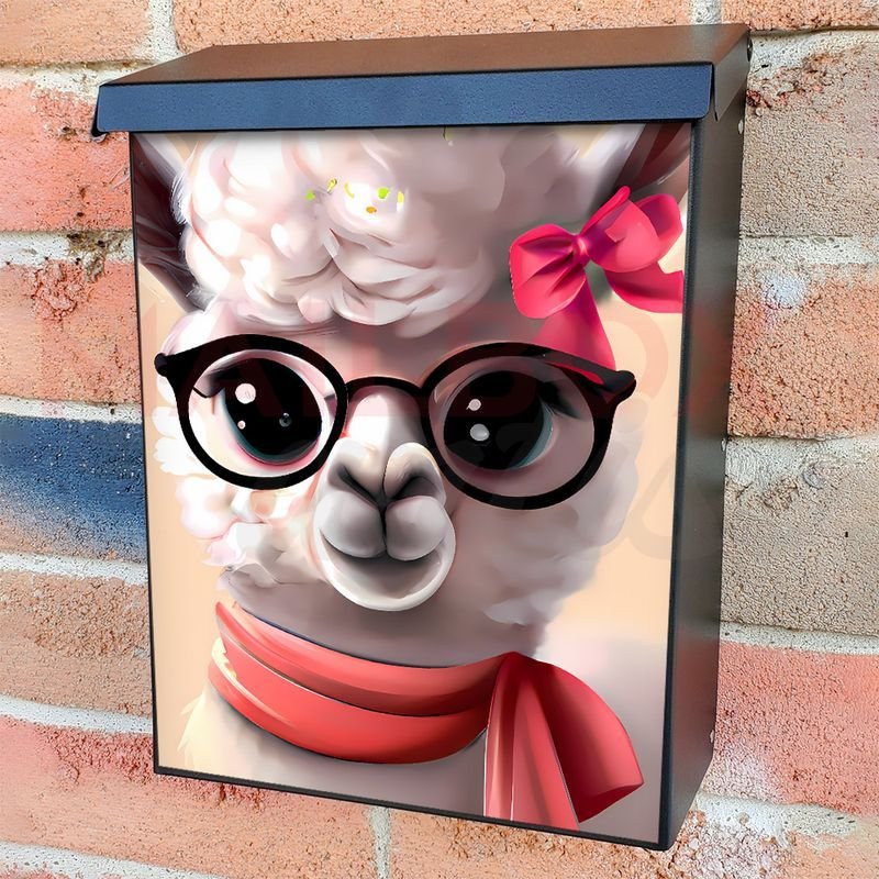 With this Llama Girl with Eyeglasses colonial mailbox cover it’s pretty easy to convert your mailbox to a special and unique item. These covers require a flat surface, so they work with colonial mailboxes that do not have any embossed decoration or signs. In case your mailbox doesn’t work with these covers, you can purchase the preinstalled cover on a brand new mailbox as well. Also, you can create your custom colonial mailbox cover using you own pictures, adding your name, street number, etc.
