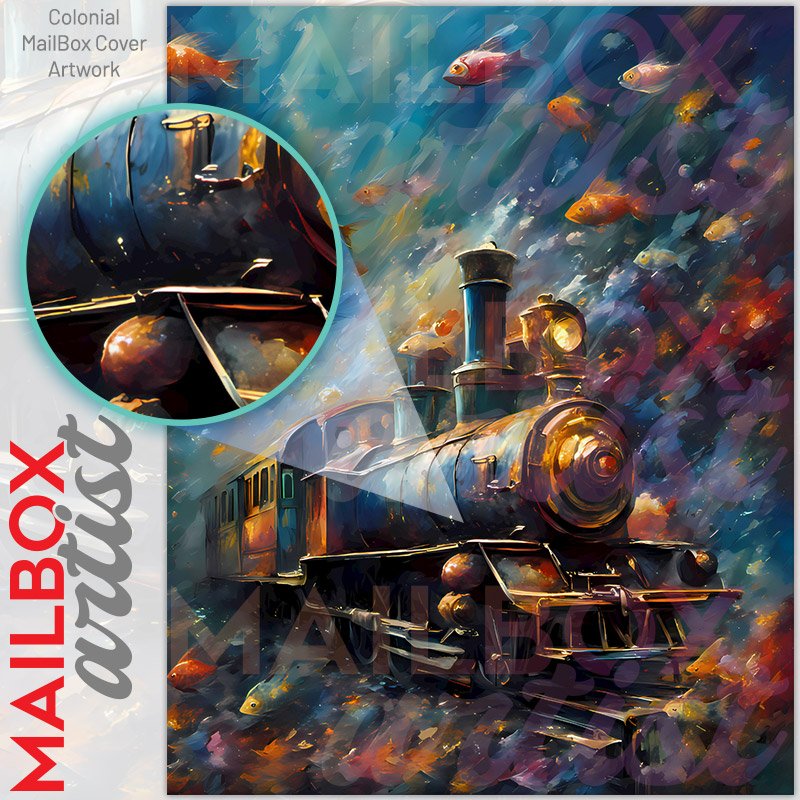 With this Locomotive in the Ocean colonial mailbox cover it’s pretty easy to convert your mailbox to a special and unique item. These covers require a flat surface, so they work with colonial mailboxes that do not have any embossed decoration or signs. Magnetic mailbox covers work with steel colonial boxes only, while self-adhesive vinyl covers are available for aluminum, plastic and steel boxes. We also offer both self-adhesive and magnetic covers with regular opaque white vinyl or reflective vinyl, which works similarly to license plates or road signs. The reflective option makes the entire cover’s surface reflective, ensuring visibility at night. In case your mailbox doesn’t work with these covers, you can purchase the preinstalled cover on a brand new mailbox as well. Also, you can create your custom colonial mailbox cover using you own pictures, adding your name, street number, etc.