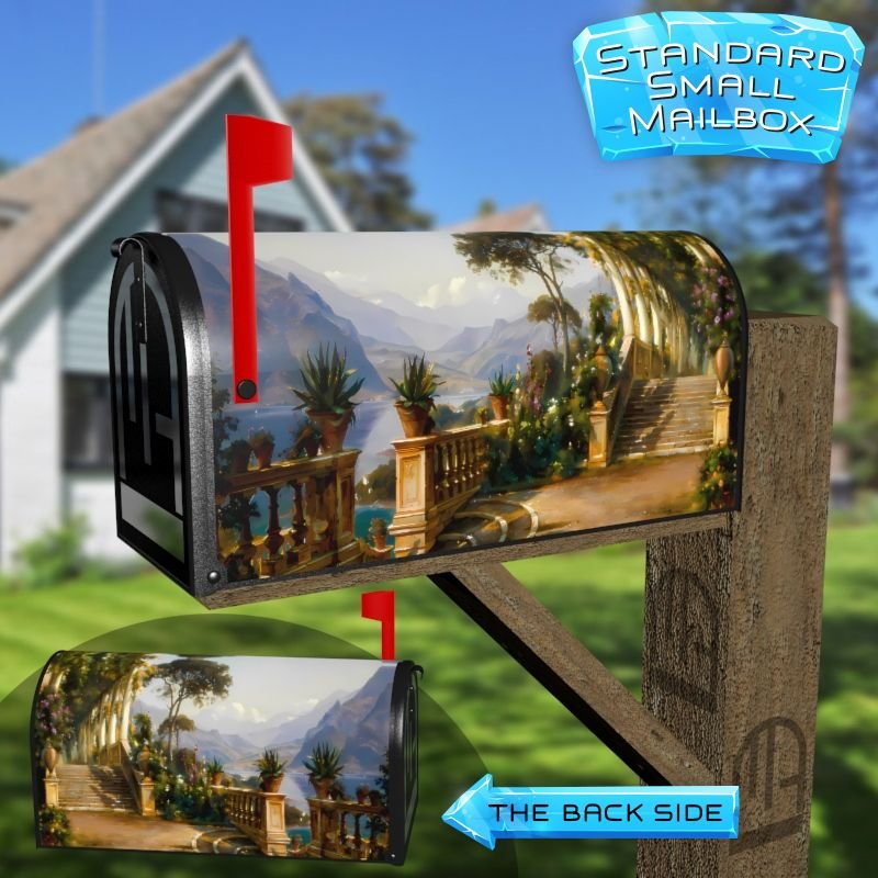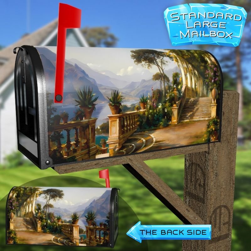 Dressing up your rural farm mailbox with the Lodge on Lake Como by C. F. Aagaard mailbox cover is an easy way to convert it into a unique and special item. These covers require a smooth surface, so they are compatible with rural farm mailboxes that do not have any embossed decorations or signs. Magnetic mailbox covers work with steel boxes only, while self-adhesive vinyl covers are available for aluminum, plastic and steel boxes. If your mailbox is not compatible with these covers, you can purchase a brand new mailbox with a preinstalled cover. Additionally, you have the option to create a custom rural farm mailbox cover with your own pictures, name, street number, etc.