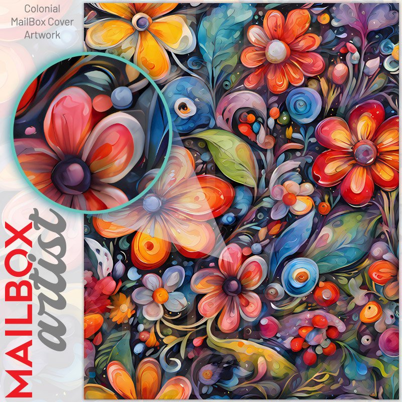With this Lovely Colorful Flowers colonial mailbox cover it’s pretty easy to convert your mailbox to a special and unique item. These covers require a flat surface, so they work with colonial mailboxes that do not have any embossed decoration or signs. Magnetic mailbox covers work with steel colonial boxes only, while self-adhesive vinyl covers are available for aluminum, plastic and steel boxes. We also offer both self-adhesive and magnetic covers with regular opaque white vinyl or reflective vinyl, which works similarly to license plates or road signs. The reflective option makes the entire cover’s surface reflective, ensuring visibility at night. In case your mailbox doesn’t work with these covers, you can purchase the preinstalled cover on a brand new mailbox as well. Also, you can create your custom colonial mailbox cover using you own pictures, adding your name, street number, etc.