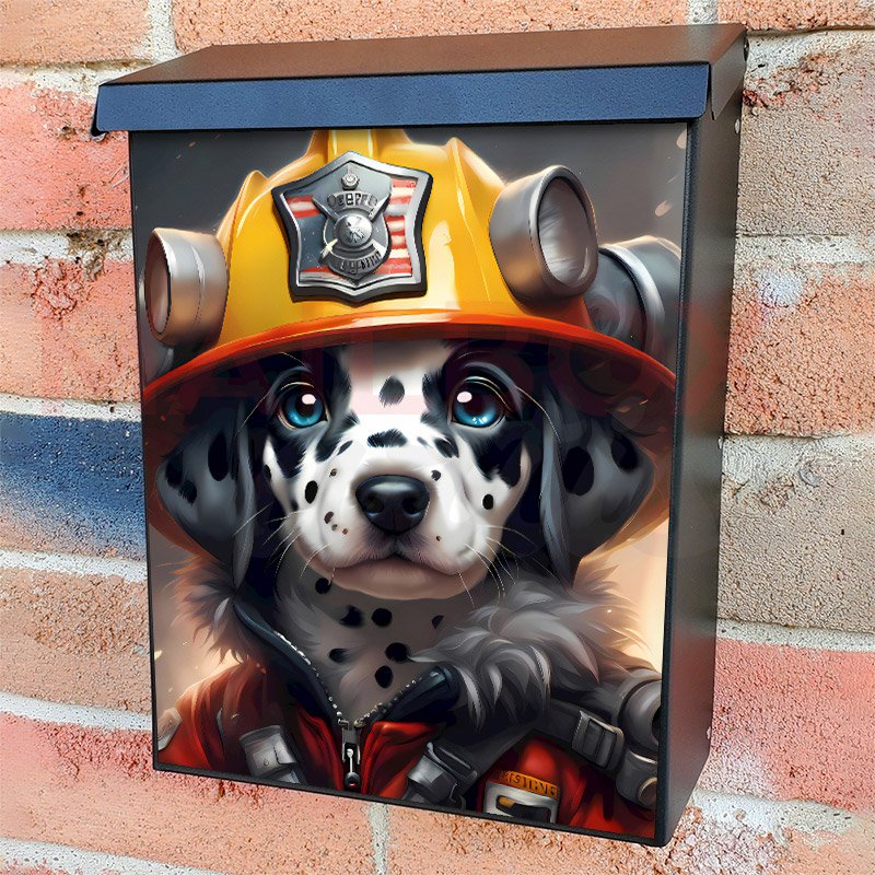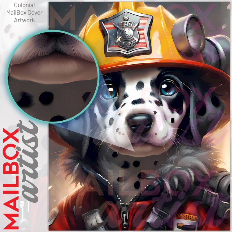With this Lovely Firefighter Dalmatian colonial mailbox cover it’s pretty easy to convert your mailbox to a special and unique item. These covers require a flat surface, so they work with colonial mailboxes that do not have any embossed decoration or signs. Magnetic mailbox covers work with steel colonial boxes only, while self-adhesive vinyl covers are available for aluminum, plastic and steel boxes. We also offer both self-adhesive and magnetic covers with regular opaque white vinyl or reflective vinyl, which works similarly to license plates or road signs. The reflective option makes the entire cover’s surface reflective, ensuring visibility at night. In case your mailbox doesn’t work with these covers, you can purchase the preinstalled cover on a brand new mailbox as well. Also, you can create your custom colonial mailbox cover using you own pictures, adding your name, street number, etc.