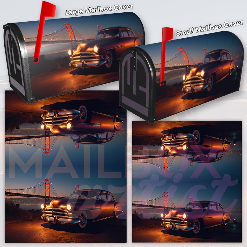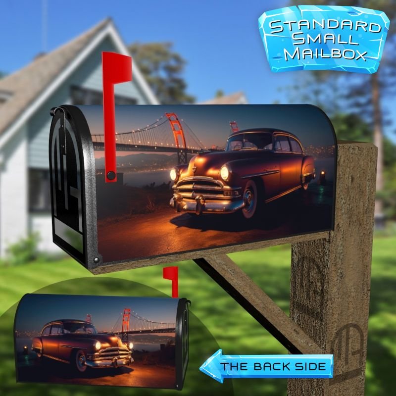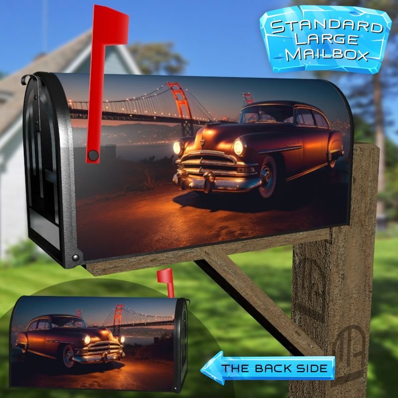 Dressing up your rural farm mailbox with the Lowrider With Custom Paint Job Nightlife with a Bridge behind mailbox cover is an easy way to convert it into a unique and special item. These covers require a smooth surface, so they are compatible with rural farm mailboxes that do not have any embossed decorations or signs. Magnetic mailbox covers work with steel boxes only, while self-adhesive vinyl covers are available for aluminum, plastic and steel boxes. If your mailbox is not compatible with these covers, you can purchase a brand new mailbox with a preinstalled cover. Additionally, you have the option to create a custom rural farm mailbox cover with your own pictures, name, street number, etc.