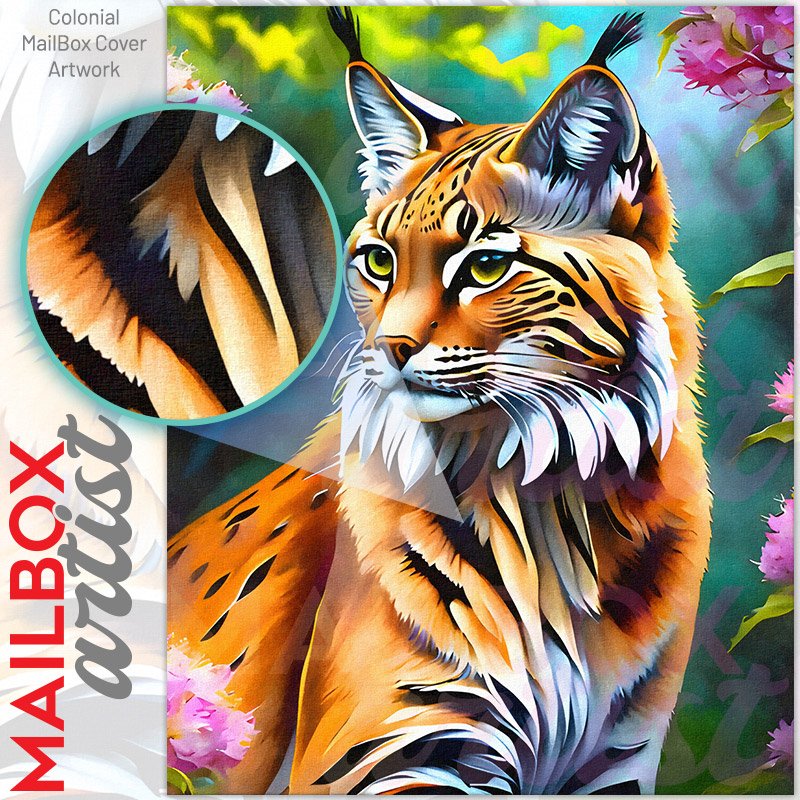 With this Lynx Within the Flowers colonial mailbox cover it’s pretty easy to convert your mailbox to a special and unique item. These covers require a flat surface, so they work with colonial mailboxes that do not have any embossed decoration or signs. Magnetic mailbox covers work with steel colonial boxes only, while self-adhesive vinyl covers are available for aluminum, plastic and steel boxes. We also offer both self-adhesive and magnetic covers with regular opaque white vinyl or reflective vinyl, which works similarly to license plates or road signs. The reflective option makes the entire cover’s surface reflective, ensuring visibility at night. In case your mailbox doesn’t work with these covers, you can purchase the preinstalled cover on a brand new mailbox as well. Also, you can create your custom colonial mailbox cover using you own pictures, adding your name, street number, etc.