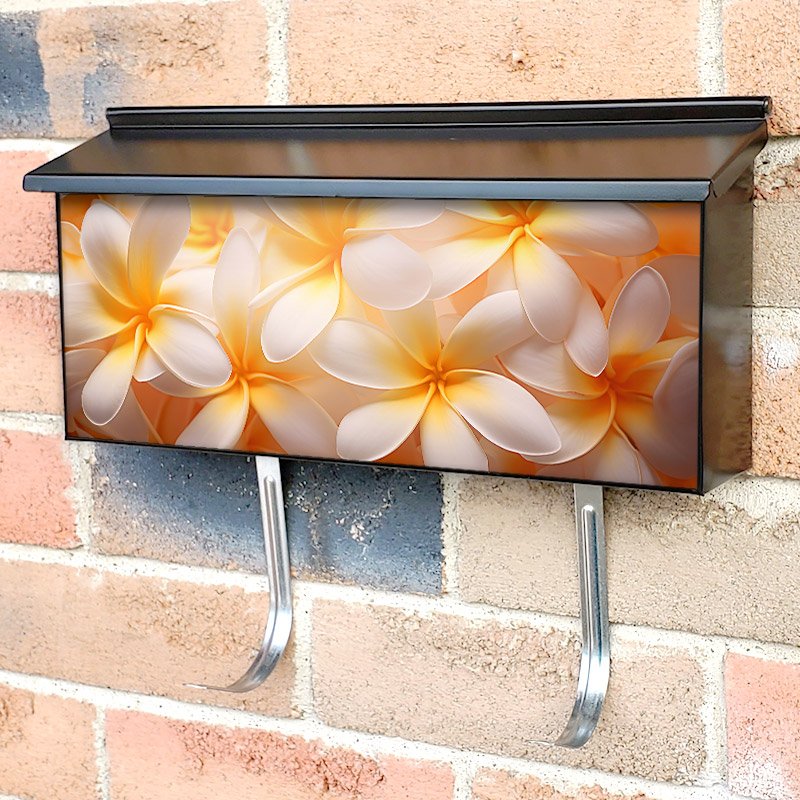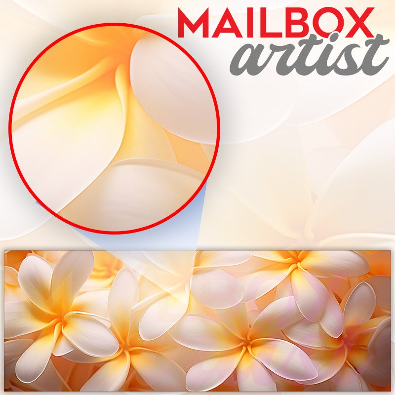 Applying your Macro Capture Of A Plumeria Flower townhouse / ranch mailbox cover it’s pretty easy to convert your mailbox to a special and unique item. These covers require a flat surface, so they work with townhouse / ranch mailboxes that do not have any embossed decoration or signs. Magnetic mailbox covers work with steel boxes, for aluminum and plastic boxes we offer the self-adhesive vinyl covers. In case your mailbox doesn’t work with these covers, you can purchase the preinstalled cover on a brand new mailbox as well. Also, you can create your custom townhouse / ranch mailbox cover using you own pictures, adding your name, street number, etc.