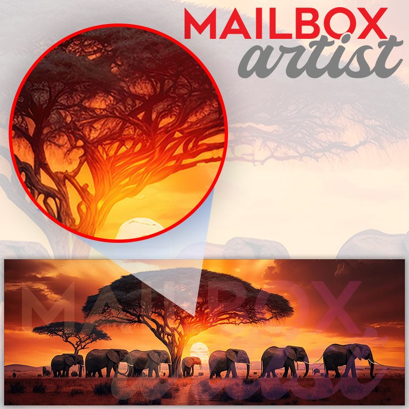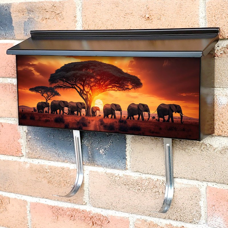 Applying your Majestic Savannah With A Herd Of Elephants townhouse / ranch mailbox cover it’s pretty easy to convert your mailbox to a special and unique item. These covers require a flat surface, so they work with townhouse / ranch mailboxes that do not have any embossed decoration or signs. Magnetic mailbox covers work with steel boxes, for aluminum and plastic boxes we offer the self-adhesive vinyl covers. In case your mailbox doesn’t work with these covers, you can purchase the preinstalled cover on a brand new mailbox as well. Also, you can create your custom townhouse / ranch mailbox cover using you own pictures, adding your name, street number, etc.