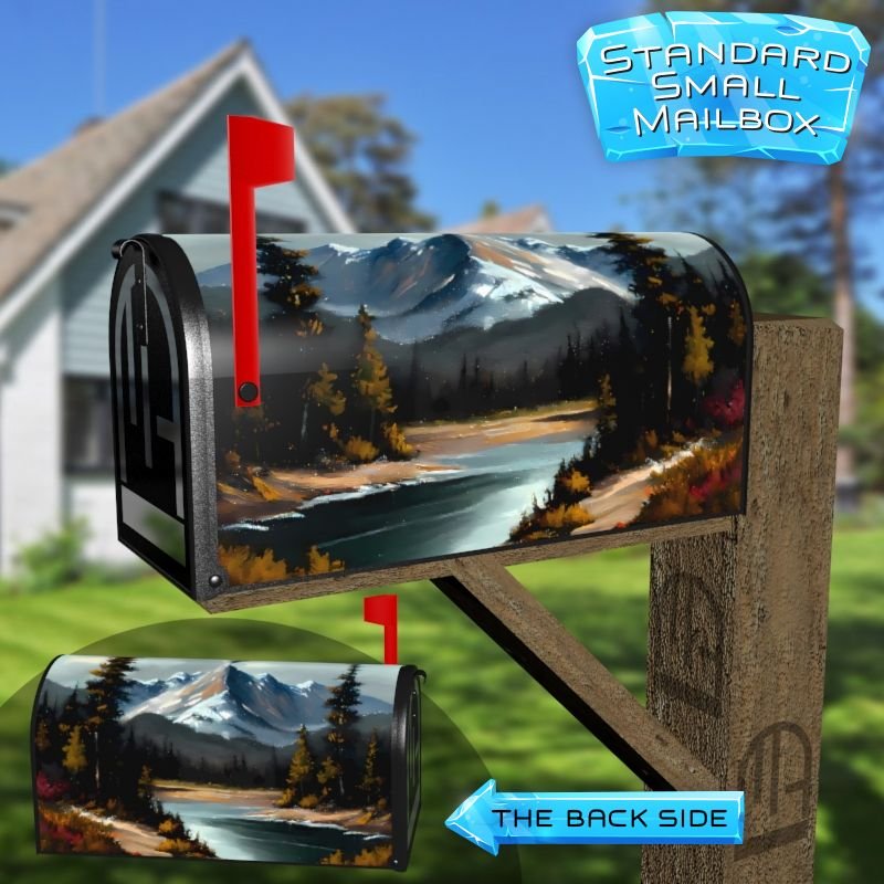 Dressing up your rural farm mailbox with the Majestic Snowy Hill mailbox cover is an easy way to convert it into a unique and special item. These covers require a smooth surface, so they are compatible with rural farm mailboxes that do not have any embossed decorations or signs. Magnetic mailbox covers work with steel boxes only, while self-adhesive vinyl covers are available for aluminum, plastic and steel boxes. If your mailbox is not compatible with these covers, you can purchase a brand new mailbox with a preinstalled cover. Additionally, you have the option to create a custom rural farm mailbox cover with your own pictures, name, street number, etc.