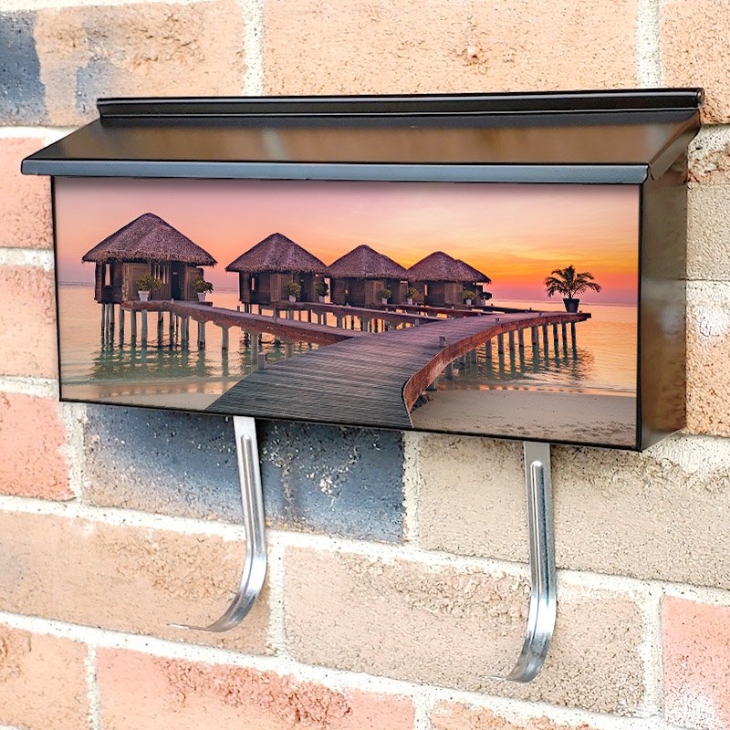 Maldives Island Sunset Panorama Water Bungalows Resort Townhouse Mailbox Cover