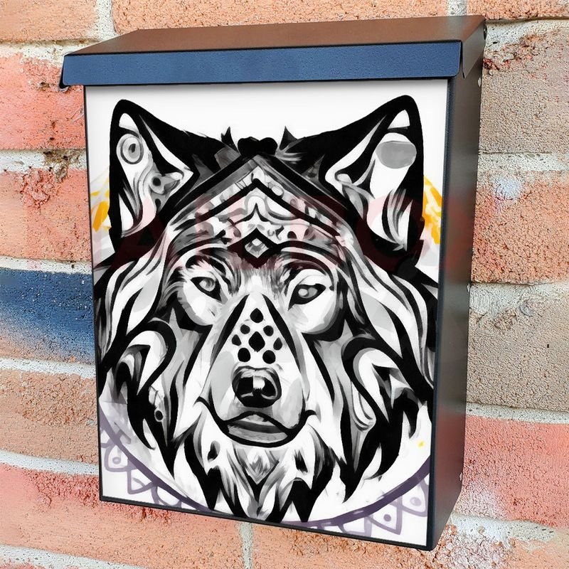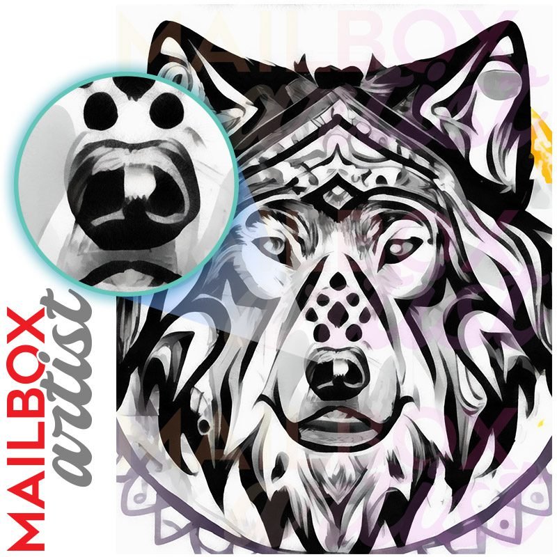 This Mandala Wolf mailbox design was created by Krisztina Soos
