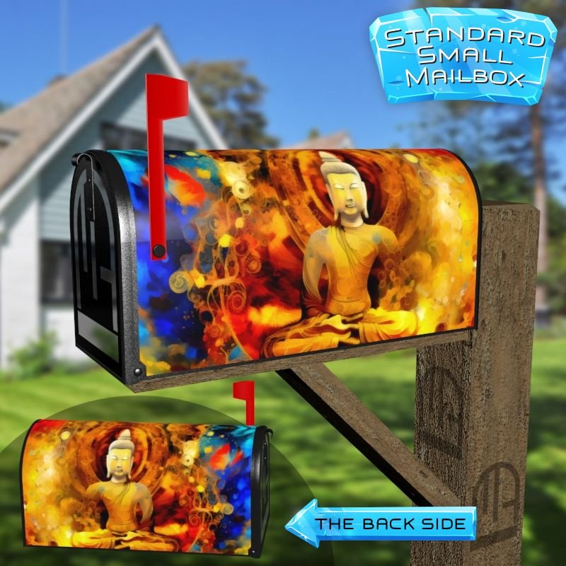 Dressing up your rural farm mailbox with the Meditating Buddha mailbox cover is an easy way to convert it into a unique and special item. These covers require a smooth surface, so they are compatible with rural farm mailboxes that do not have any embossed decorations or signs. Magnetic mailbox covers work with steel boxes only, while self-adhesive vinyl covers are available for aluminum, plastic and steel boxes. If your mailbox is not compatible with these covers, you can purchase a brand new mailbox with a preinstalled cover. Additionally, you have the option to create a custom rural farm mailbox cover with your own pictures, name, street number, etc.