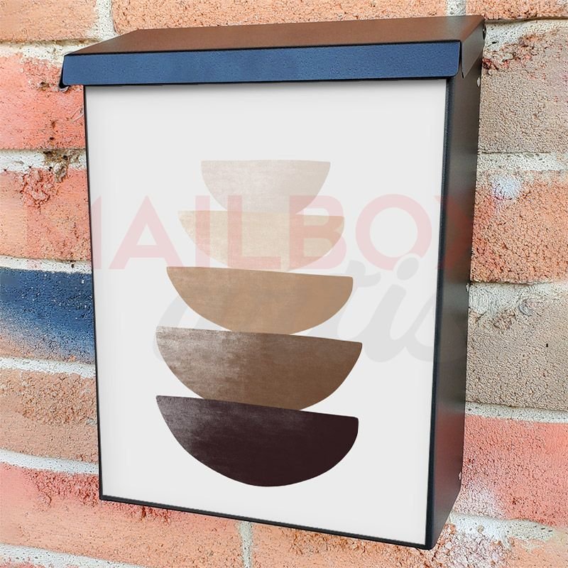 With this Minimalist Zen Mid Century Art #30 colonial mailbox cover it’s pretty easy to convert your mailbox to a special and unique item. These covers require a flat surface, so they work with colonial mailboxes that do not have any embossed decoration or signs. Magnetic mailbox covers work with steel colonial boxes only, while self-adhesive vinyl covers are available for aluminum, plastic and steel boxes. We also offer both self-adhesive and magnetic covers with regular opaque white vinyl or reflective vinyl, which works similarly to license plates or road signs. The reflective option makes the entire cover’s surface reflective, ensuring visibility at night. In case your mailbox doesn’t work with these covers, you can purchase the preinstalled cover on a brand new mailbox as well. Also, you can create your custom colonial mailbox cover using you own pictures, adding your name, street number, etc.