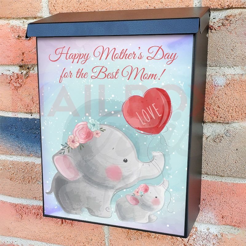 With this Mom and Baby Elephants #2 colonial mailbox cover it’s pretty easy to convert your mailbox to a special and unique item. These covers require a flat surface, so they work with colonial mailboxes that do not have any embossed decoration or signs. Magnetic mailbox covers work with steel colonial boxes only, while self-adhesive vinyl covers are available for aluminum, plastic and steel boxes. We also offer both self-adhesive and magnetic covers with regular opaque white vinyl or reflective vinyl, which works similarly to license plates or road signs. The reflective option makes the entire cover’s surface reflective, ensuring visibility at night. In case your mailbox doesn’t work with these covers, you can purchase the preinstalled cover on a brand new mailbox as well. Also, you can create your custom colonial mailbox cover using you own pictures, adding your name, street number, etc.