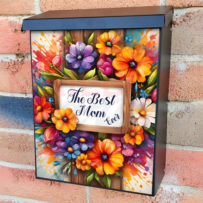 With this Mother’s Day Sign with Flowers colonial mailbox cover it’s pretty easy to convert your mailbox to a special and unique item. These covers require a flat surface, so they work with colonial mailboxes that do not have any embossed decoration or signs. Magnetic mailbox covers work with steel colonial boxes only, while self-adhesive vinyl covers are available for aluminum, plastic and steel boxes. We also offer both self-adhesive and magnetic covers with regular opaque white vinyl or reflective vinyl, which works similarly to license plates or road signs. The reflective option makes the entire cover’s surface reflective, ensuring visibility at night. In case your mailbox doesn’t work with these covers, you can purchase the preinstalled cover on a brand new mailbox as well. Also, you can create your custom colonial mailbox cover using you own pictures, adding your name, street number, etc.