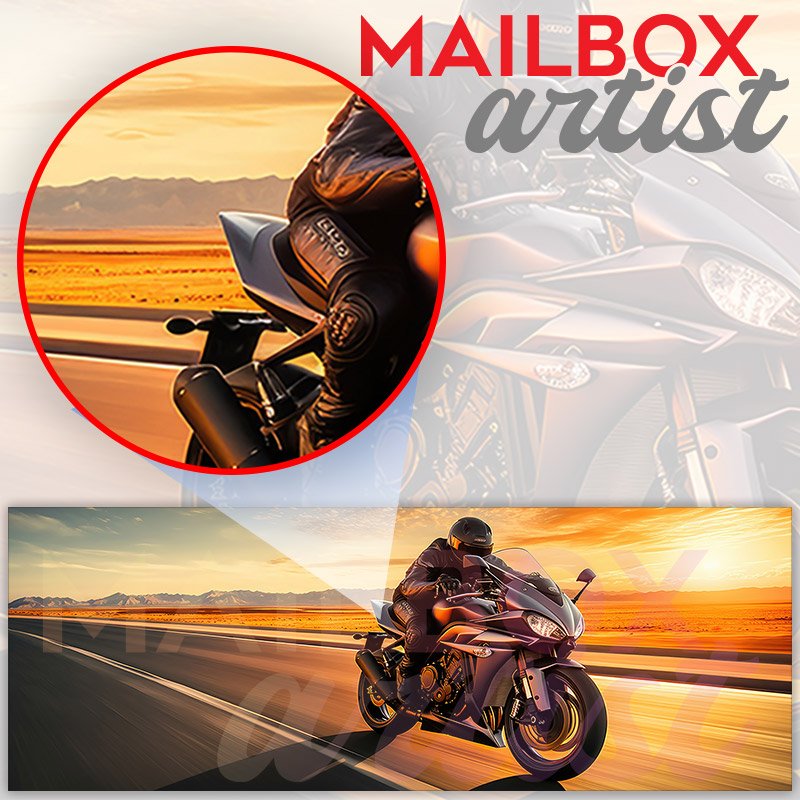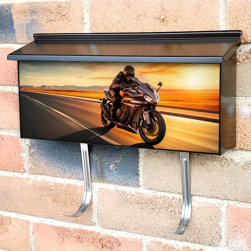 Applying your Motorbike On The Road townhouse / ranch mailbox cover it’s pretty easy to convert your mailbox to a special and unique item. These covers require a flat surface, so they work with townhouse / ranch mailboxes that do not have any embossed decoration or signs. Magnetic mailbox covers work with steel boxes, for aluminum and plastic boxes we offer the self-adhesive vinyl covers. In case your mailbox doesn’t work with these covers, you can purchase the preinstalled cover on a brand new mailbox as well. Also, you can create your custom townhouse / ranch mailbox cover using you own pictures, adding your name, street number, etc.