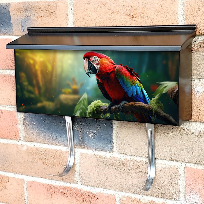 Applying your Multicolored Parrot In The Forest townhouse / ranch mailbox cover it’s pretty easy to convert your mailbox to a special and unique item. These covers require a flat surface, so they work with townhouse / ranch mailboxes that do not have any embossed decoration or signs. Magnetic mailbox covers work with steel boxes, for aluminum and plastic boxes we offer the self-adhesive vinyl covers. In case your mailbox doesn’t work with these covers, you can purchase the preinstalled cover on a brand new mailbox as well. Also, you can create your custom townhouse / ranch mailbox cover using you own pictures, adding your name, street number, etc.