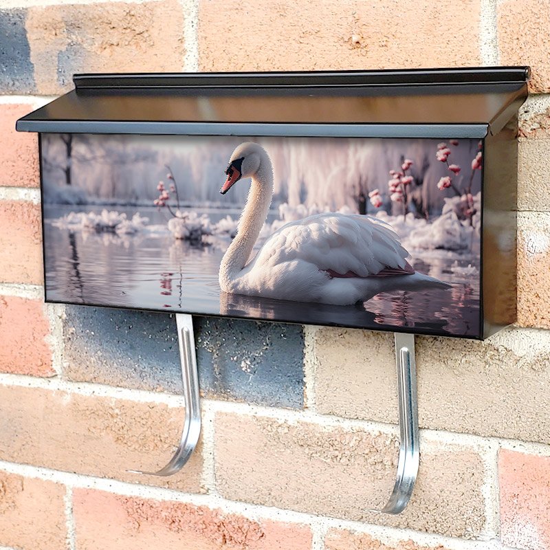 Applying your Mute Swan Glides Gracefully On Tranquil Pond townhouse / ranch mailbox cover it’s pretty easy to convert your mailbox to a special and unique item. These covers require a flat surface, so they work with townhouse / ranch mailboxes that do not have any embossed decoration or signs. Magnetic mailbox covers work with steel boxes, for aluminum and plastic boxes we offer the self-adhesive vinyl covers. In case your mailbox doesn’t work with these covers, you can purchase the preinstalled cover on a brand new mailbox as well. Also, you can create your custom townhouse / ranch mailbox cover using you own pictures, adding your name, street number, etc.