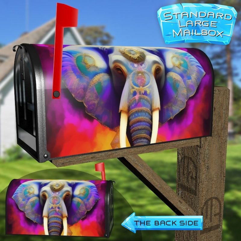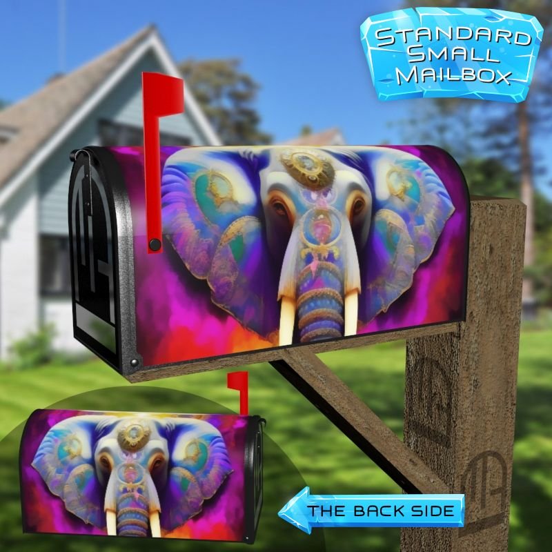 Dressing up your rural farm mailbox with the Native Indian Elephant #2 mailbox cover is an easy way to convert it into a unique and special item. These covers require a smooth surface, so they are compatible with rural farm mailboxes that do not have any embossed decorations or signs. Magnetic mailbox covers work with steel boxes only, while self-adhesive vinyl covers are available for aluminum, plastic and steel boxes. If your mailbox is not compatible with these covers, you can purchase a brand new mailbox with a preinstalled cover. Additionally, you have the option to create a custom rural farm mailbox cover with your own pictures, name, street number, etc.