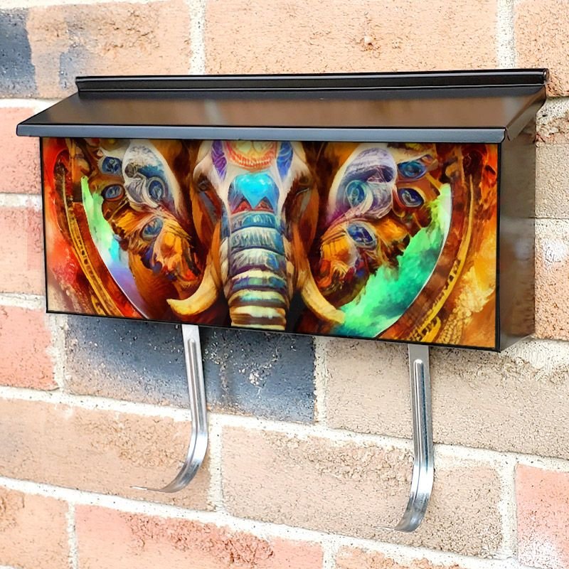 Applying your Native Indian Elephant townhouse / ranch mailbox cover it’s pretty easy to convert your mailbox to a special and unique item. These covers require a flat surface, so they work with townhouse / ranch mailboxes that do not have any embossed decoration or signs. Magnetic mailbox covers work with steel boxes, for aluminum and plastic boxes we offer the self-adhesive vinyl covers. In case your mailbox doesn’t work with these covers, you can purchase the preinstalled cover on a brand new mailbox as well. Also, you can create your custom townhouse / ranch mailbox cover using you own pictures, adding your name, street number, etc.