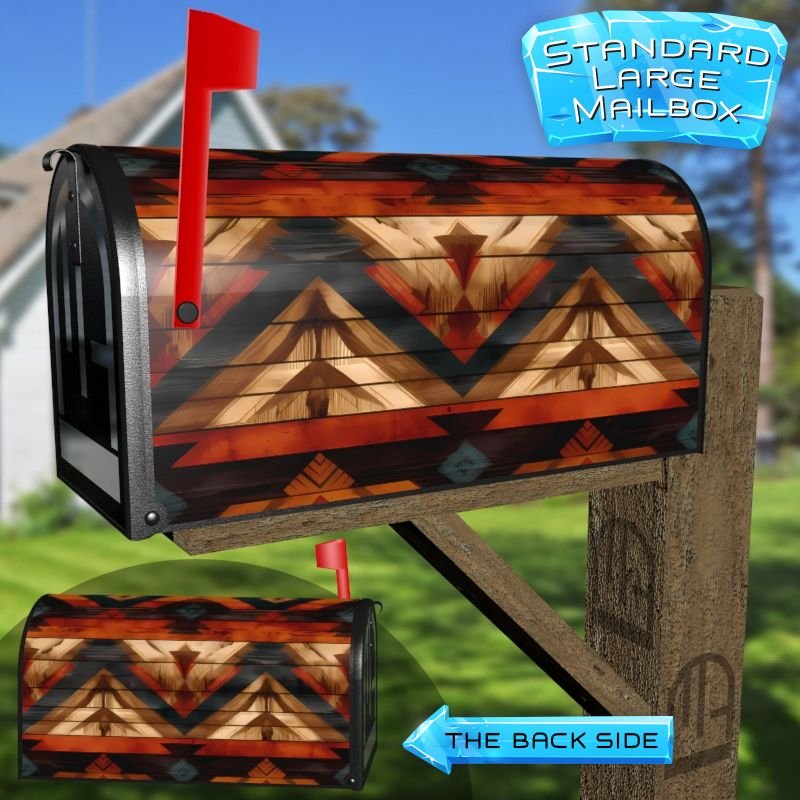 Dressing up your rural farm mailbox with the Native Navajo Pattern #2 mailbox cover is an easy way to convert it into a unique and special item. These covers require a smooth surface, so they are compatible with rural farm mailboxes that do not have any embossed decorations or signs. Magnetic mailbox covers work with steel boxes only, while self-adhesive vinyl covers are available for aluminum, plastic and steel boxes. If your mailbox is not compatible with these covers, you can purchase a brand new mailbox with a preinstalled cover. Additionally, you have the option to create a custom rural farm mailbox cover with your own pictures, name, street number, etc.