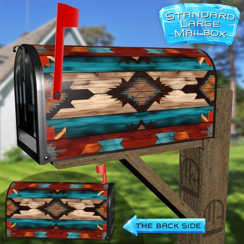Dressing up your rural farm mailbox with the Native Navajo Pattern mailbox cover is an easy way to convert it into a unique and special item. These covers require a smooth surface, so they are compatible with rural farm mailboxes that do not have any embossed decorations or signs. Magnetic mailbox covers work with steel boxes only, while self-adhesive vinyl covers are available for aluminum, plastic and steel boxes. If your mailbox is not compatible with these covers, you can purchase a brand new mailbox with a preinstalled cover. Additionally, you have the option to create a custom rural farm mailbox cover with your own pictures, name, street number, etc.
