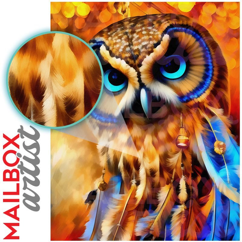 With this Native Owl with Feathers colonial mailbox cover it’s pretty easy to convert your mailbox to a special and unique item. These covers require a flat surface, so they work with colonial mailboxes that do not have any embossed decoration or signs. In case your mailbox doesn’t work with these covers, you can purchase the preinstalled cover on a brand new mailbox as well. Also, you can create your custom colonial mailbox cover using you own pictures, adding your name, street number, etc.