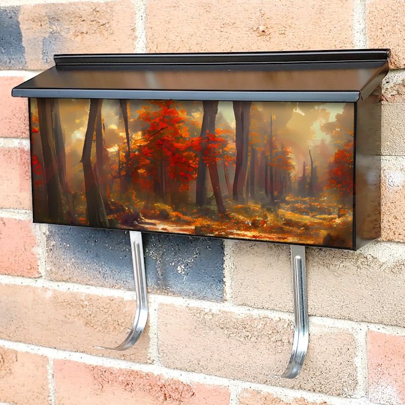 Applying your October Forest #2 townhouse / ranch mailbox cover it’s pretty easy to convert your mailbox to a special and unique item. These covers require a flat surface, so they work with townhouse / ranch mailboxes that do not have any embossed decoration or signs. Magnetic mailbox covers work with steel boxes, for aluminum and plastic boxes we offer the self-adhesive vinyl covers. In case your mailbox doesn’t work with these covers, you can purchase the preinstalled cover on a brand new mailbox as well. Also, you can create your custom townhouse / ranch mailbox cover using you own pictures, adding your name, street number, etc.