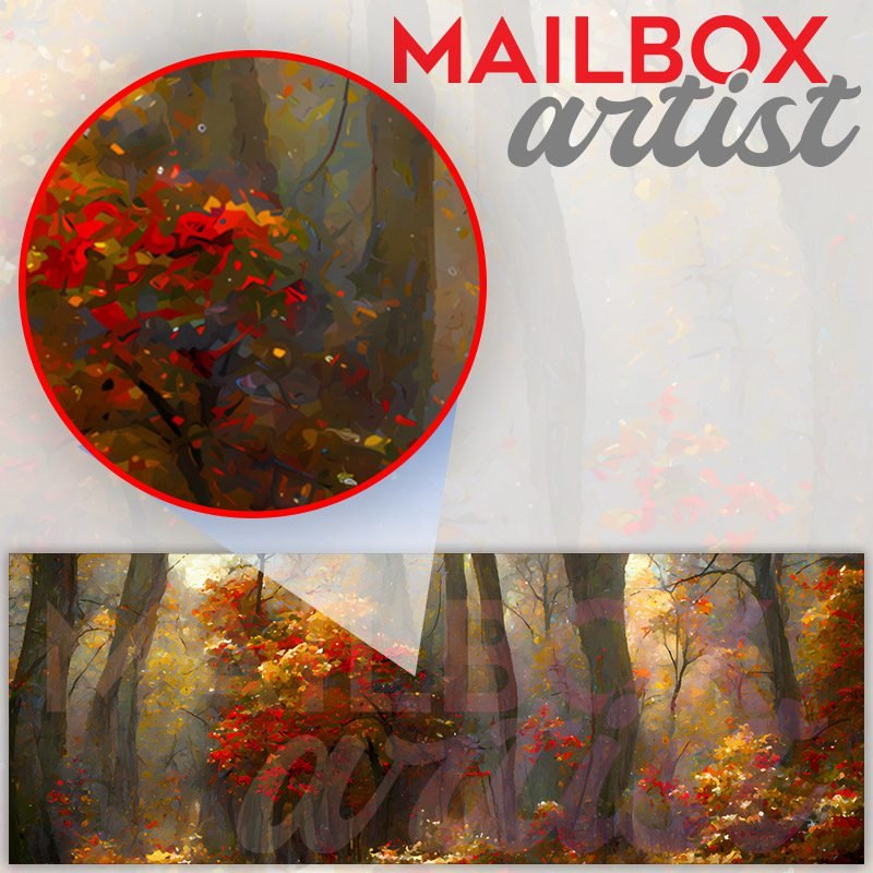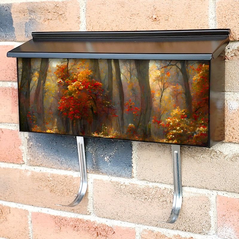 Applying your October Forest #3 townhouse / ranch mailbox cover it’s pretty easy to convert your mailbox to a special and unique item. These covers require a flat surface, so they work with townhouse / ranch mailboxes that do not have any embossed decoration or signs. Magnetic mailbox covers work with steel boxes, for aluminum and plastic boxes we offer the self-adhesive vinyl covers. In case your mailbox doesn’t work with these covers, you can purchase the preinstalled cover on a brand new mailbox as well. Also, you can create your custom townhouse / ranch mailbox cover using you own pictures, adding your name, street number, etc.