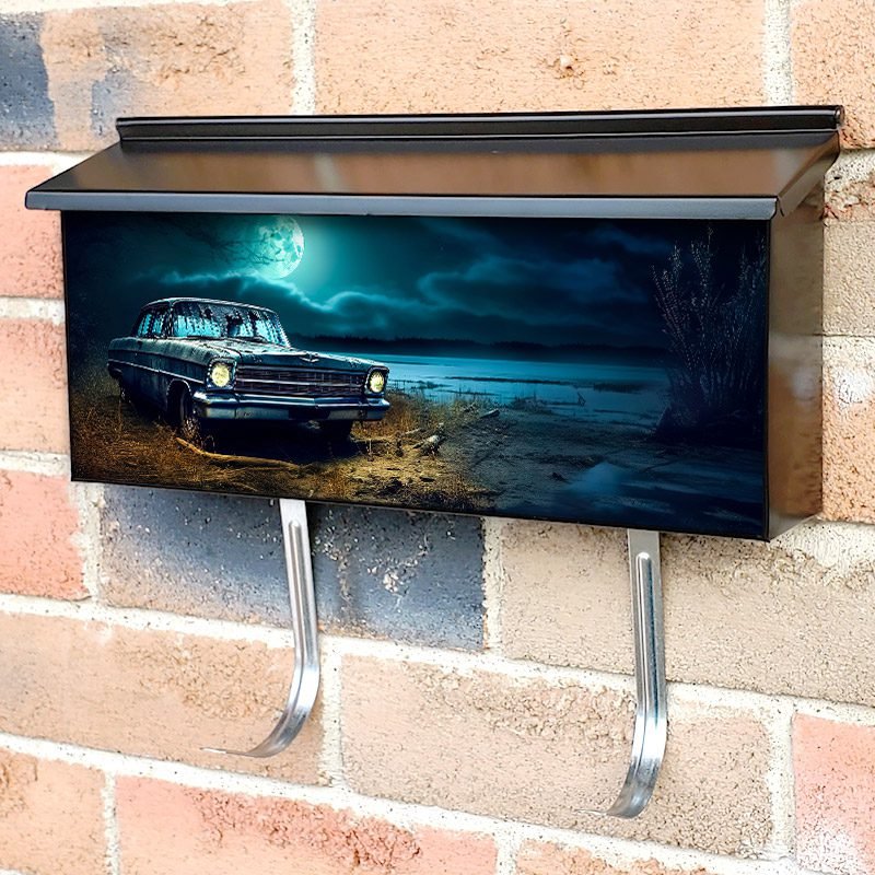Applying your Old Car On The Shore Of The Lake At Sunset townhouse / ranch mailbox cover it’s pretty easy to convert your mailbox to a special and unique item. These covers require a flat surface, so they work with townhouse / ranch mailboxes that do not have any embossed decoration or signs. Magnetic mailbox covers work with steel boxes, for aluminum and plastic boxes we offer the self-adhesive vinyl covers. In case your mailbox doesn’t work with these covers, you can purchase the preinstalled cover on a brand new mailbox as well. Also, you can create your custom townhouse / ranch mailbox cover using you own pictures, adding your name, street number, etc.