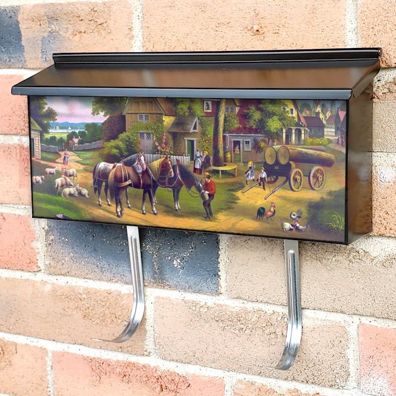 Applying your Old Country Farmhouse townhouse / ranch mailbox cover it’s pretty easy to convert your mailbox to a special and unique item. These covers require a flat surface, so they work with townhouse / ranch mailboxes that do not have any embossed decoration or signs. Magnetic mailbox covers work with steel boxes, for aluminum and plastic boxes we offer the self-adhesive vinyl covers. In case your mailbox doesn’t work with these covers, you can purchase the preinstalled cover on a brand new mailbox as well. Also, you can create your custom townhouse / ranch mailbox cover using you own pictures, adding your name, street number, etc.