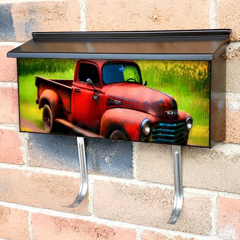 Applying your Old Farmhouse Truck #6 townhouse / ranch mailbox cover it’s pretty easy to convert your mailbox to a special and unique item. These covers require a flat surface, so they work with townhouse / ranch mailboxes that do not have any embossed decoration or signs. Magnetic mailbox covers work with steel boxes, for aluminum and plastic boxes we offer the self-adhesive vinyl covers. In case your mailbox doesn’t work with these covers, you can purchase the preinstalled cover on a brand new mailbox as well. Also, you can create your custom townhouse / ranch mailbox cover using you own pictures, adding your name, street number, etc.