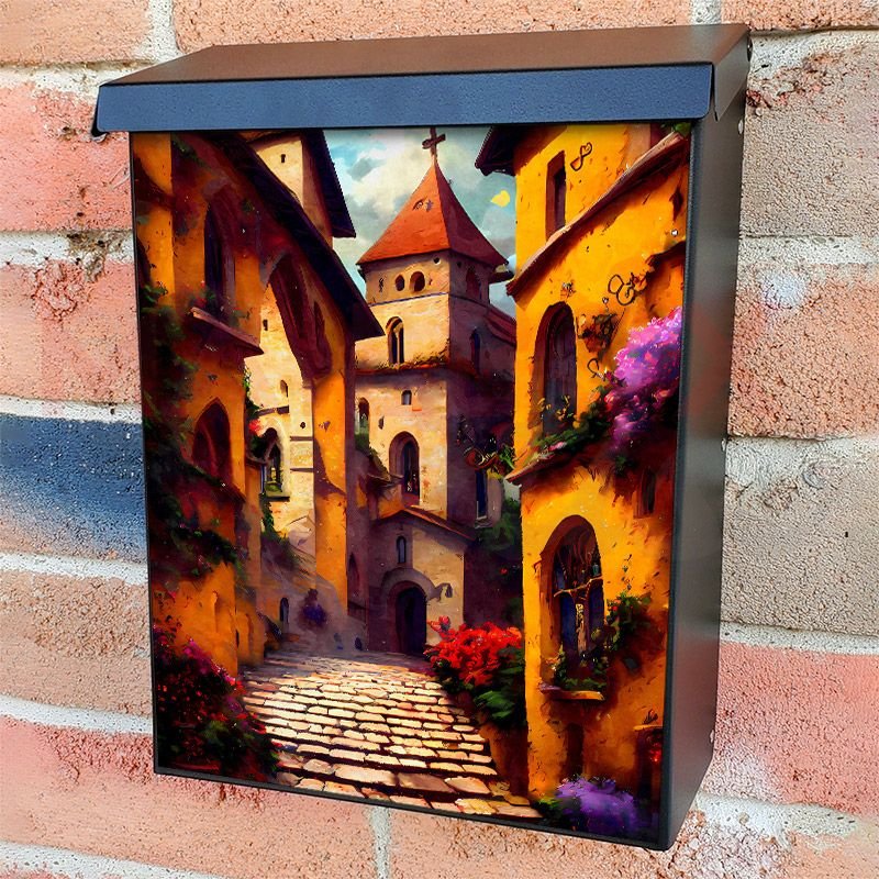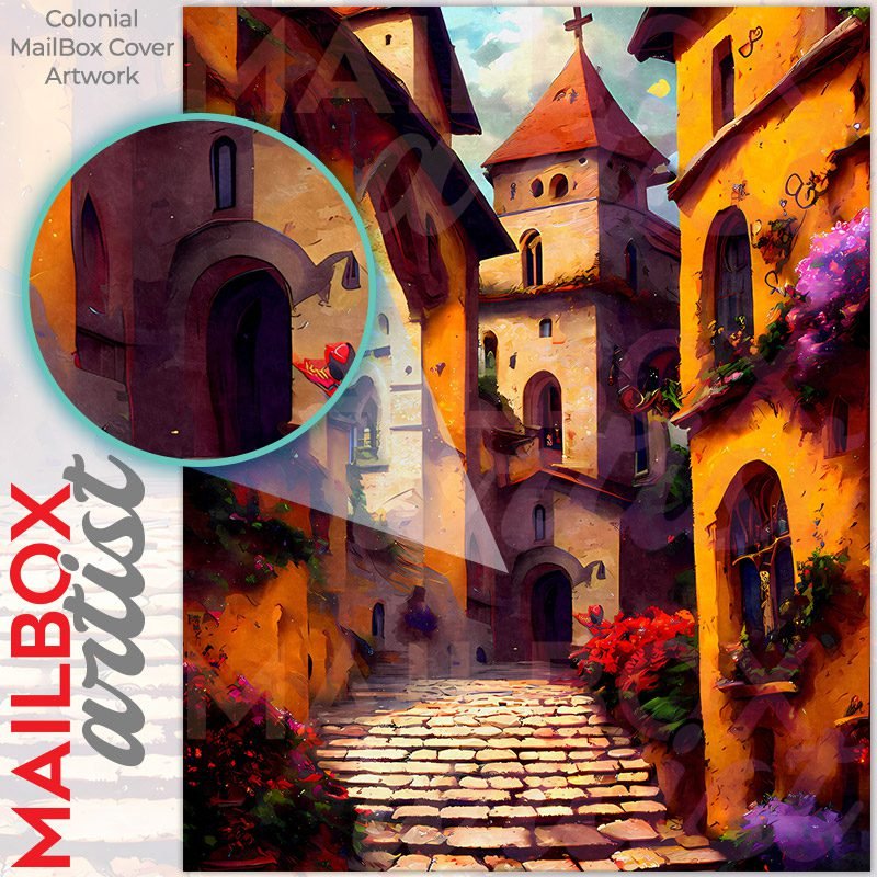 With this Old Mediterranean City #2 colonial mailbox cover it’s pretty easy to convert your mailbox to a special and unique item. These covers require a flat surface, so they work with colonial mailboxes that do not have any embossed decoration or signs. Magnetic mailbox covers work with steel colonial boxes only, while self-adhesive vinyl covers are available for aluminum, plastic and steel boxes. We also offer both self-adhesive and magnetic covers with regular opaque white vinyl or reflective vinyl, which works similarly to license plates or road signs. The reflective option makes the entire cover’s surface reflective, ensuring visibility at night. In case your mailbox doesn’t work with these covers, you can purchase the preinstalled cover on a brand new mailbox as well. Also, you can create your custom colonial mailbox cover using you own pictures, adding your name, street number, etc.