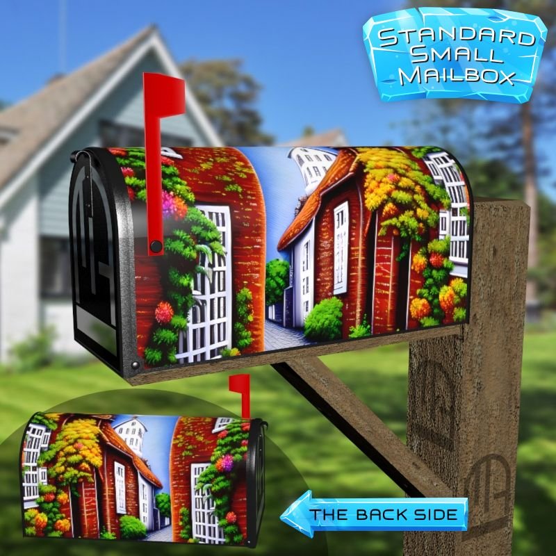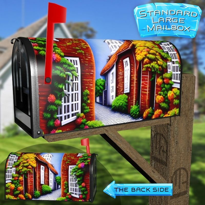 Dressing up your rural farm mailbox with the Old Mediterranean Town #1 mailbox cover is an easy way to convert it into a unique and special item. These covers require a smooth surface, so they are compatible with rural farm mailboxes that do not have any embossed decorations or signs. Magnetic mailbox covers work with steel boxes only, while self-adhesive vinyl covers are available for aluminum, plastic and steel boxes. If your mailbox is not compatible with these covers, you can purchase a brand new mailbox with a preinstalled cover. Additionally, you have the option to create a custom rural farm mailbox cover with your own pictures, name, street number, etc.