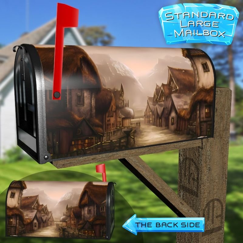 Dressing up your rural farm mailbox with the Old Nordic Village #1 mailbox cover is an easy way to convert it into a unique and special item. These covers require a smooth surface, so they are compatible with rural farm mailboxes that do not have any embossed decorations or signs. Magnetic mailbox covers work with steel boxes only, while self-adhesive vinyl covers are available for aluminum, plastic and steel boxes. If your mailbox is not compatible with these covers, you can purchase a brand new mailbox with a preinstalled cover. Additionally, you have the option to create a custom rural farm mailbox cover with your own pictures, name, street number, etc.