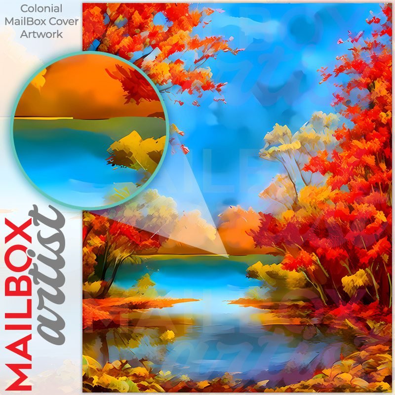 With this Orange and Blue Autumn colonial mailbox cover it’s pretty easy to convert your mailbox to a special and unique item. These covers require a flat surface, so they work with colonial mailboxes that do not have any embossed decoration or signs. Magnetic mailbox covers work with steel colonial boxes only, while self-adhesive vinyl covers are available for aluminum, plastic and steel boxes. We also offer both self-adhesive and magnetic covers with regular opaque white vinyl or reflective vinyl, which works similarly to license plates or road signs. The reflective option makes the entire cover’s surface reflective, ensuring visibility at night. In case your mailbox doesn’t work with these covers, you can purchase the preinstalled cover on a brand new mailbox as well. Also, you can create your custom colonial mailbox cover using you own pictures, adding your name, street number, etc.